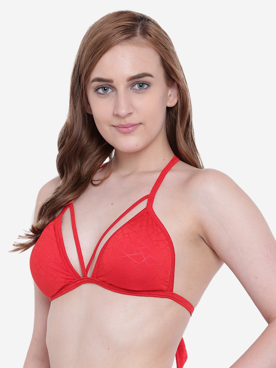 Padded Halter Neck Textured Two Piece Swim Bra
